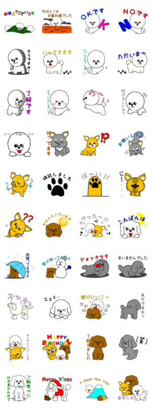ビションフリーゼとトイプードルとチワワ スタンプ画像一覧