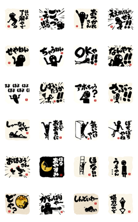 シリーズ第20弾!!関西弁で伝えよう第2弾!!日本の文化の「筆文字」&アニメーションスタンプで伝えよう!!動く人と墨の文字で会話にインパクトを与えてくれるはず!