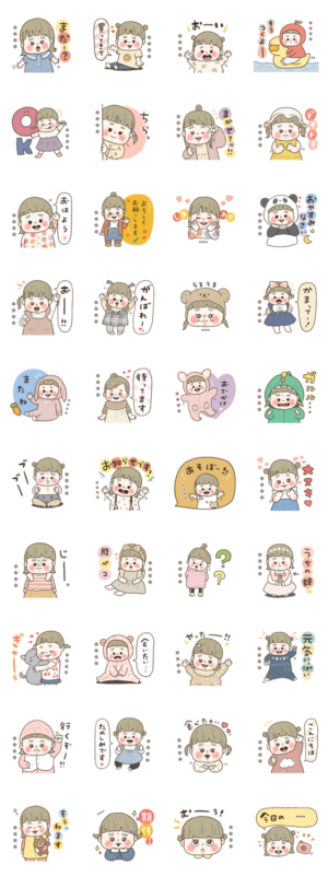 毎日ニコニコおしゃれな女の子のカスタムスタンプです♡赤ちゃん、子供、保育園児、幼稚園児がいるパパママおじいちゃんおばあちゃんに◎ママ友との連絡にも♡