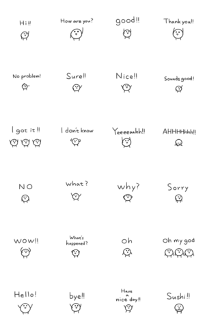落書きチックなところがシンプルでいい感じ。可愛らしいし使えるスタンプですね。