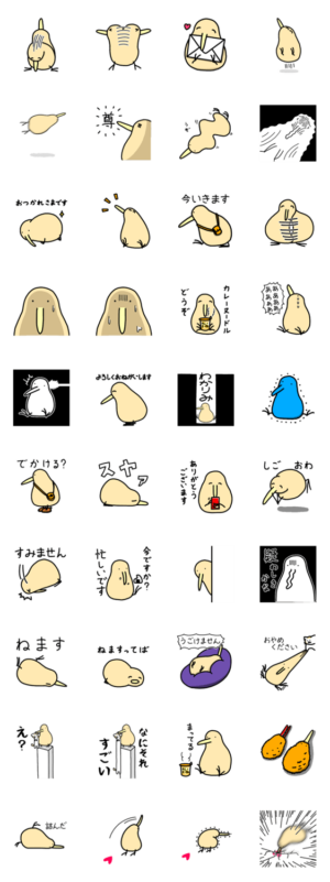いつもはげしく動くキーウィのスタンプです。うわああああああああジャスティンのGIFアニメ-オカリナ講師のジャスティン より発売