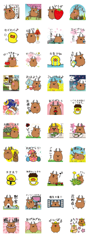 奈良健康ランド公式マスコットキャラクター「お風呂シカフロロ」の春スタンプ!フロロくんが可愛く皆さんの気持ちをお伝えします!日常会話に入る時にお使いください。天然大和温泉 奈良健康ランド より発売