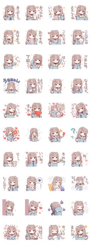 スコティッシュフォールドの猫少女スタンプです。毎日使える挨拶や日常会話、リアクションが沢山入っています。#はじめてのLINEスタンプ にオススメ