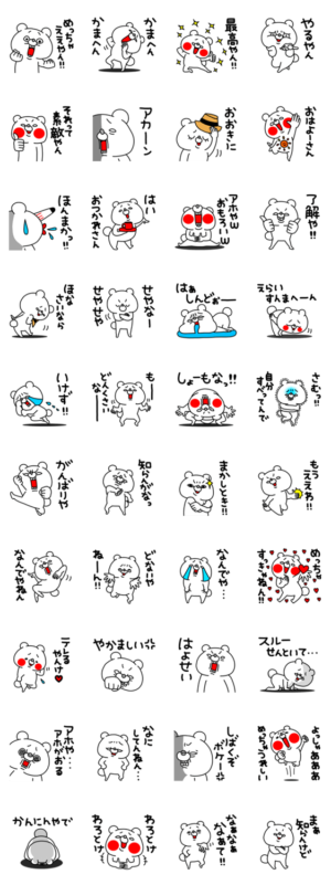 全力うさぎの名前なし編クマクマバージョン。関西弁をあやつるかわいいシロクマがカワイイ方言で相槌や日常会話や「なんでやねん」「どないやねん」とツッコミをいれる。cosotto名前スタンプ より発売