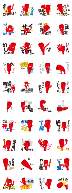 野球の応援にも使ってほしいメガホンをキャラクターにしたスタンプ。広島が大好き!野球が大好き!な人にぴったりの熱い広島弁メッセージを満載。