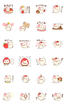 家族や友人、恋人に!イチゴの帽子をかぶったり、可愛さたっぷりのにゃんこのスタンプです♪