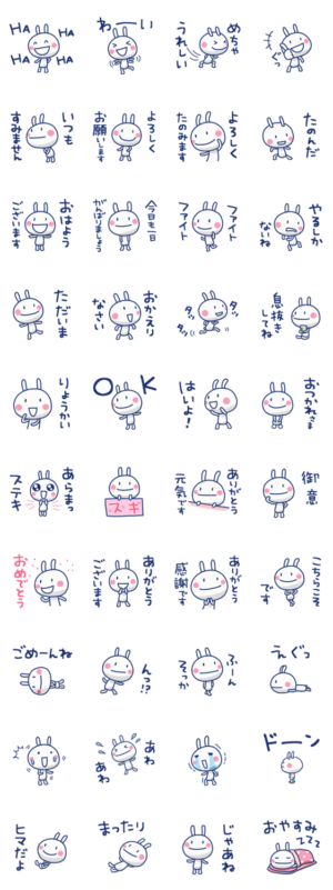 ほぼ白うさぎ。ポップタッチ風。「御意」「はいよ!」から「じゃあね」まで。毎日使える、ほぼ白うさぎのスタンプ集。#はじめてのLINEスタンプ にオススメ
