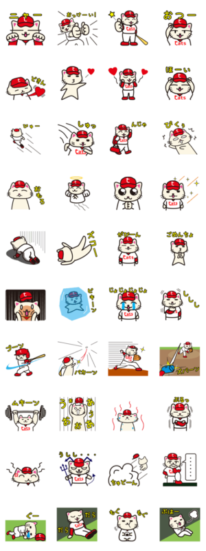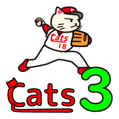 ねこプロ野球(NPB)ニャントラルリーグ。猫島キャッツのスタンプ第3弾です。赤いチームや広島が好きな人へ・・・かずにゃん より発売
