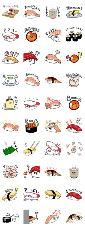 シュールで可愛いお寿司のキャラクター達がスタンプになりました。 このスタンプに出逢ってしまった貴方。もう時すでにお寿司です。エルソニック株式会社 より発売