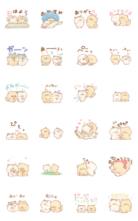 ミケとクリーム、2匹の仲良しにゃんこのアニメーションスタンプです。2匹のそっくりなちびっこにゃんこ、けだまとこだま入り。日常使いに是非♫