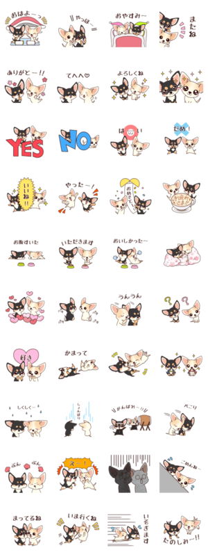 かわいい2色のチワワの毎日使えるスタンプです。家族やお友達に♪