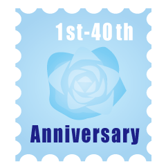 結婚記念日、カップル(恋人達)の付き合った記念日、開店、開業、イベントなど1周年から40周年まで記念日に毎年使えます。シンプルな花の記念日切手風。お祝いの時に。