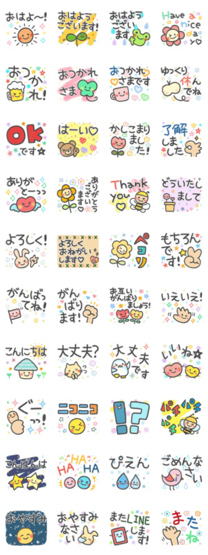 人を選ばずやさしく使えるふんわりとした絵柄で見やすいソフトスタンプ第4弾!あいさつ、返信などの日常的な言葉をでか文字で収録した使い勝手のいい便利セットです♪