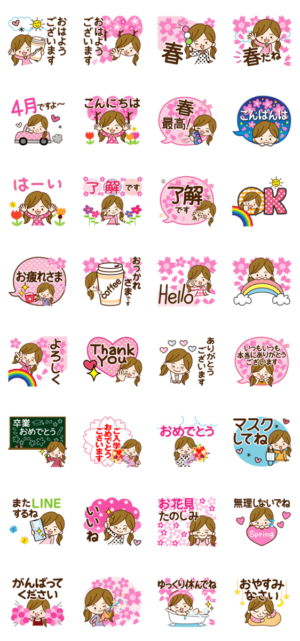春イメージがいっぱいのかわいい女子スタンプ♪親切で丁寧な言葉♪ KEN graphic