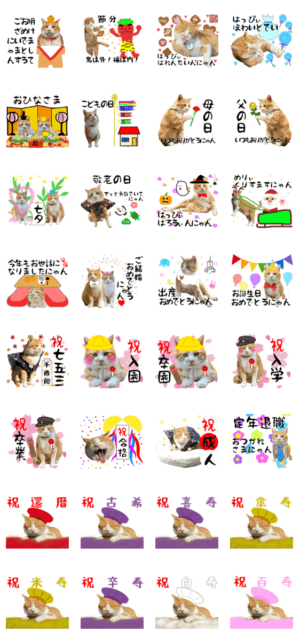 備中松山城の猫城主さんじゅーろーにゃん!ぼくのスタンプ待望の第3弾!今回は季節のイベントバージョンにゃん!いっぱい使ってにゃん!