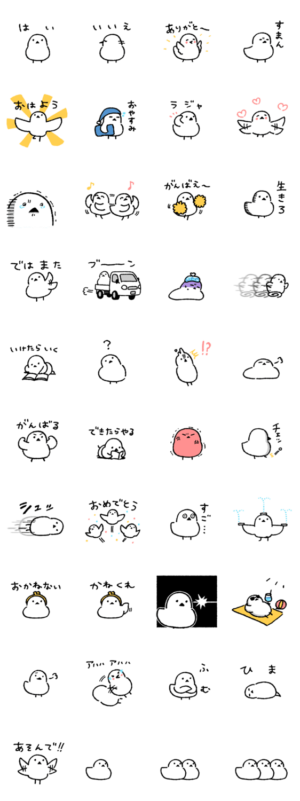 誰でも使いやすい、ものすごくシンプルな、しろくてまるい鳥のスタンプです。カツヲ より発売