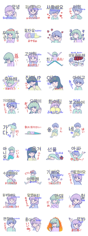 可愛い女の子たちによるハングルスタンプ スタンプ情報