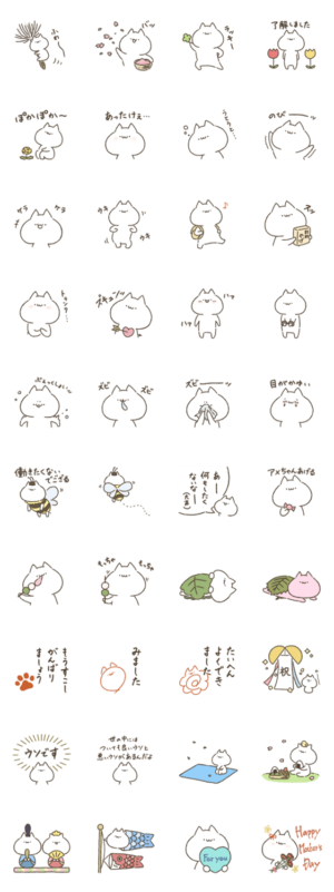 もちゃ氏が描くねこのスタンプ、春バージョンです。もちゃ より発売