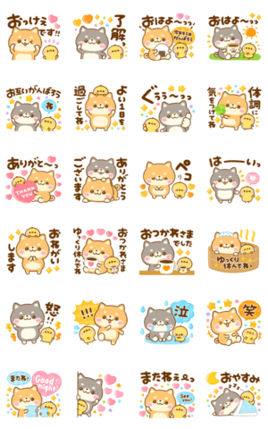 赤柴・黒柴ちゃんが画面いっぱいに飛び出して元気に動く♡柴犬ちゃんたちがほんわか癒しをお届けする大人可愛い毎日使えるポップアップスタンプです♪ぴよたぬき♡ より発売