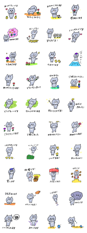 敬語でちょっと丁寧な灰色キャット スタンプ情報