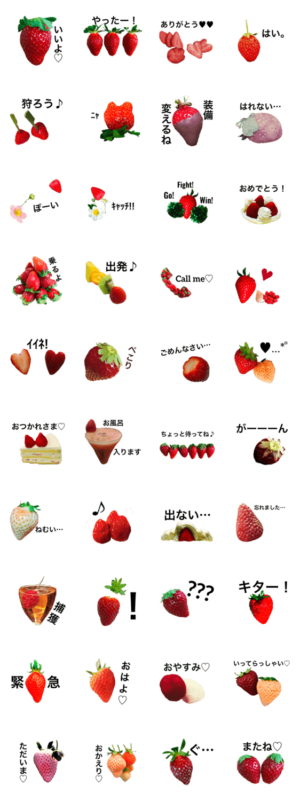 いちご実写スタンプ。いちごとモンスターの狩りをするハンターの日常に最適です。にゃんころもち より発売
