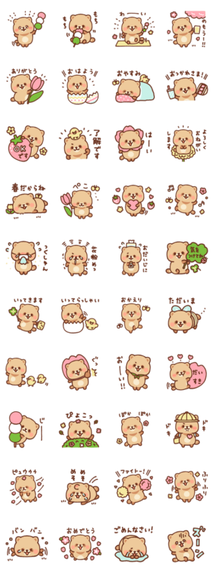 もちもちたぬきのもちたぬきスタンプ第3弾!カラフルな春仕様になって、タヌキが桜やお団子を楽しみます♪毎日の挨拶からいろんなシーンで使えるスタンプです。つじなつみ より発売