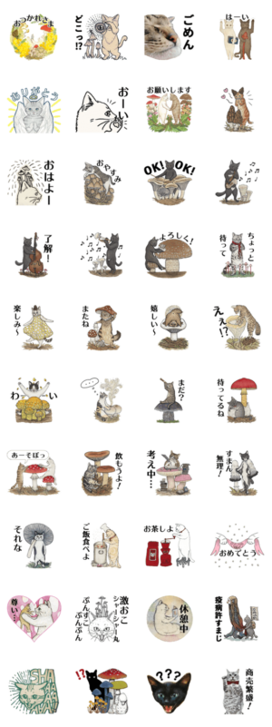 猫とネコのお友達シリーズ①~きのこと猫~ スタンプ画像一覧