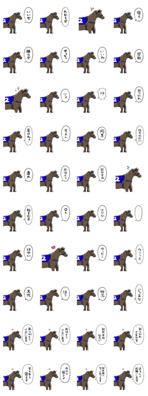 ウマの女の娘バージョンを出したので息子も出しました。競馬や競走馬好きの方とかおうまさんが好きな方とかにどうぞ。シンプルに毎日使える基本的なあいさつが多めです。オカヤマ より発売