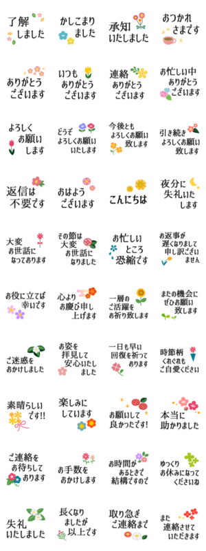 仕事やお世話になった人や年配の親戚に使えるシンプルな丁寧語のスタンプです。新社会人にも。#はじめてのLINEスタンプ にオススメ ちなみに返信不要ですは芙蓉の花ですjabo より発売
