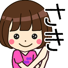 さきさんの名前入りスタンプ。 髪型が同じ「かーいって言いたいだけのスタンプ4」発売中べるうっど より発売