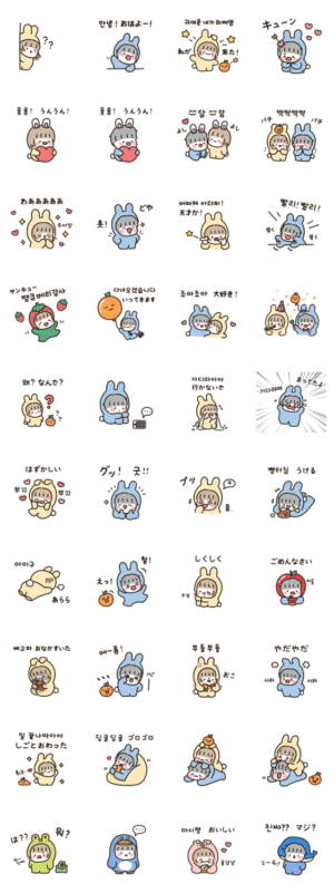 うさぎカップル(韓国語&日本語) スタンプ画像一覧