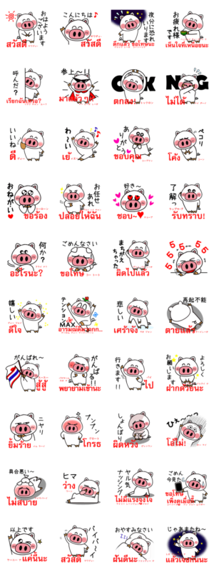 使って覚える!タイ語スタンプ 白ブタ ver. スタンプ画像一覧