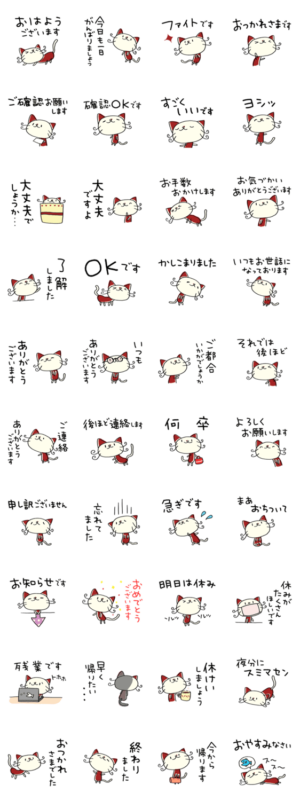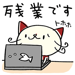 ネコのバンスキー。仕事編。「かしこまりました」「確認OKです」から「残業です」まで。仕事のシーンで、使いやすい表現がいっぱい。新社会人にもオススメ。Mami / エストループ より発売