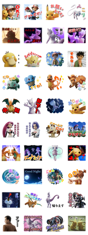 ミュウツーの逆襲をテーマとした3Dのポケモンスタンプです。ロケット団のムサシ、コジロウ、そしてボスのサカキまでもがスタンプ化しているという内容の充実ぶりが素晴らしいです。