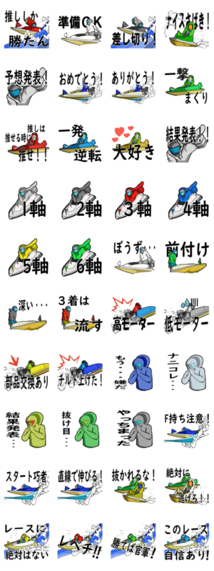 ボートレース(競艇)をしながら展開予想や結果報告をスタンプでお届けしよう。irohani より発売