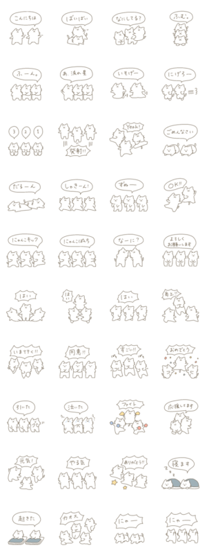 小さい白ねこ達がわちゃわちゃしてるスタンプです。猫/可愛い/ゆるい猫原のし より発売