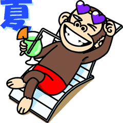 夏に使えるイラッと動くお猿さんのスタンプです。