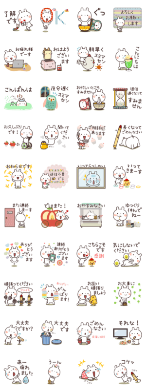 うさぎの大人可愛いスタンプ♥挨拶♥ スタンプに書いてある文字一覧