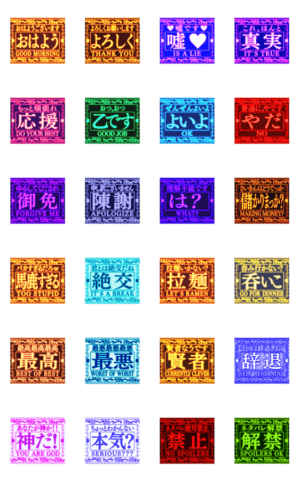 緊急事態をイメージしたアニメーションスタンプ トーク画面でかっこよく動く ネタバレ禁止 解禁 賢者なう 最高 最悪 拉麺 呑いこ 陳謝 乙 嘘です エイプリルフールにグラプロ より発売