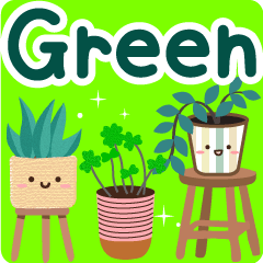 抹茶スイーツや緑色のフルーツ、グリーンプラントで癒やされませんか。毎日使える挨拶スタンプになっています。