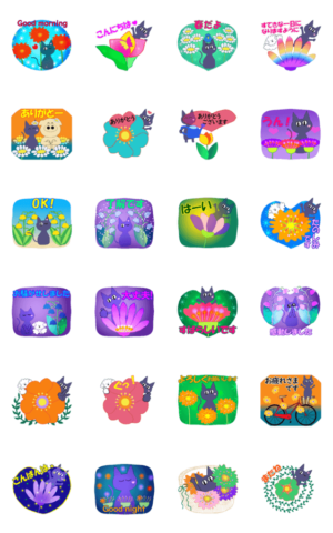 花とネコの毎日使えるあいさつです。SEA&SKYv より発売