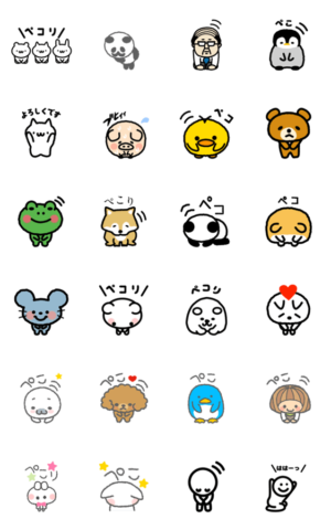 ぺこり,お辞儀スタンプ(くま/ペンギン/ハムスター/ねこ/パンダ,ぱんだ/柴犬/カエル,かえる/おじさん/ぶた/うさぎ/ひよこ/しろくま/あざらし/女の子/トイプードル/ねずみ)