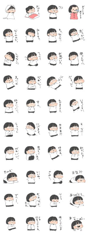 女の子(ショートヘア) スタンプに書いてある文字一覧