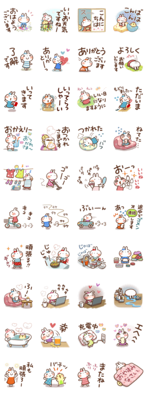 便利に使える白うさぎさんの日常スタンプです ♪ (家事・テレワーク・掃除・洗濯・料理・化粧入り♪)