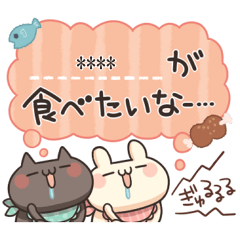 うさぎのしろとねこのくろの初のカスタムスタンプです!お好きな名前や文字を入れて楽しんで下さい!(一部の誤字を修正した最新バージョンです)