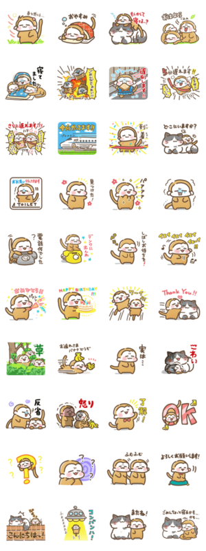 迷子の子猿たちとネコのスタンプです。サル中心。 #はじめてのLINEスタンプ にオススメ秋塚シノ より発売