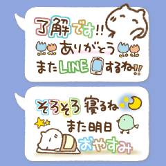 ねこちゃんやいろんな絵文字がいっぱい入って、文字もカラフル。キュートで可愛すぎる吹き出しです。毎日の挨拶や返信も、これ一個で気持ちが伝わります。takopon より発売