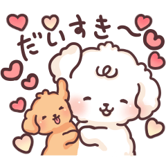 ふわふわ兄弟のトイプードルが丁寧に、たまにのんびりでシュールに、会話を可愛く彩ります♪大きいトイプはお兄ちゃんの「いしゃ」、小さいトイプが弟の「くぅ」です^^*
