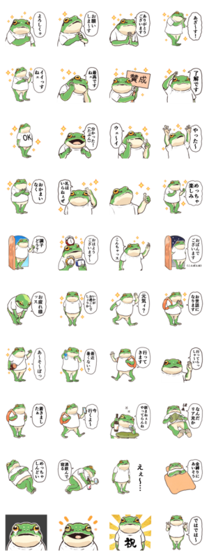 日常会話で使いやすいスタンプ集です。両生類、カエル好きさんにどうぞ。#はじめてのLINEスタンプ にオススメ