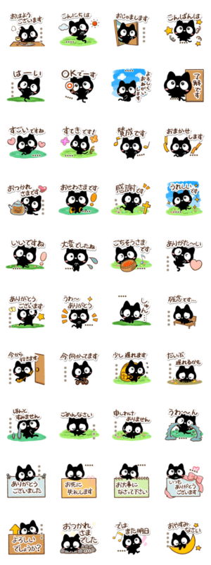 デフォルメされたくろねこのスタンプです。会話になじむ使いやすいスタンプです!